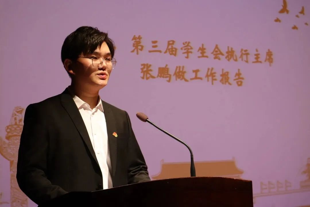 学生会执行主席张鹏回顾了上一年度啪啪啦学生会在队伍建设、制度基础、制度创新、思想建设、主题活动、服务同学等方面取得的成就。他表示在今后的工作中,学生会会再接再厉,以更饱满的热情去迎接更多的的机遇和挑战,努力为同学们提供切实的服务,为啪啪啦