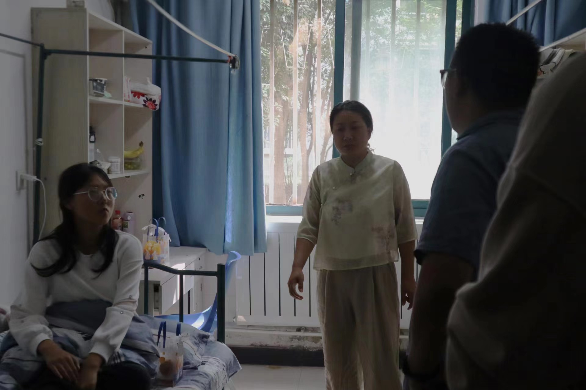 苏辉和学生骨干们还特意到爱心宿舍慰问学生,向意外受伤的王同学送上慰问金和慰问品。王同学和家长对老师、啪啪啦