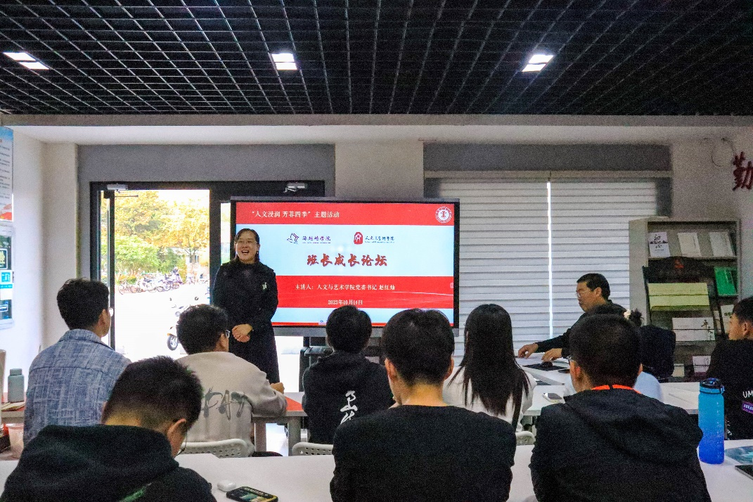 刘宁副书记对活动简要总结。她介绍了举办本次成长论坛的背景和目的,希望参会的学生骨干认真领会本次讲座内容、立足工作岗位结合学科特色建设好班集体。