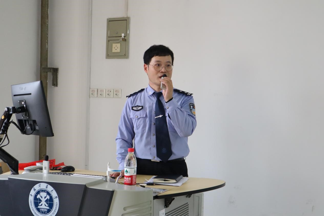 祁中誉副所长结合多年从警经验做反诈专题教育。他以近期发生在同学们周边的受骗案件为例,揭示了游戏诈骗、裸聊诈骗、语音诈骗等典型类型案件的诈骗套路和技术手段,重点介绍团伙作案的鉴别方式,详细解读电信诈骗惯用话术,精准剖析电信诈骗常见套路,向同学分享安全可靠的应对策略,并围绕新时代网络诈骗的特征、电信网络诈骗的犯罪架构对同学们进行科普教育,警醒同学们提防电信诈骗,强调银行卡、电话卡等重要物品切勿出借他人,以防被不法分子利用。此外,他还提醒同学们要警惕毒品犯罪、慎入酒吧等危险场所、远离酒驾醉驾、注意酒店隐藏摄像头、提防猥亵,正确预防生活中的安全隐患。