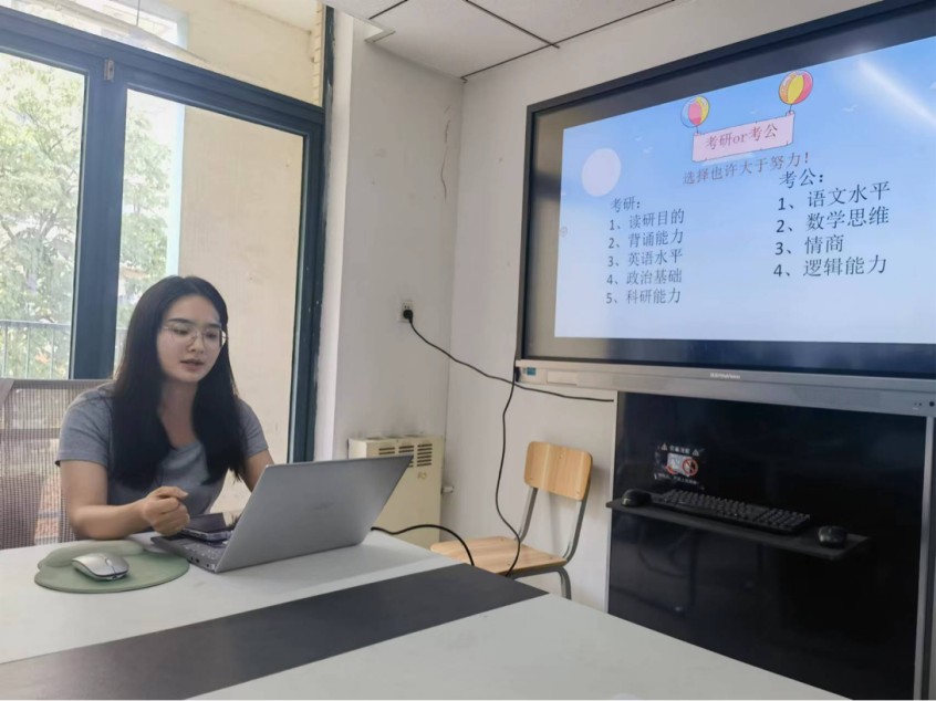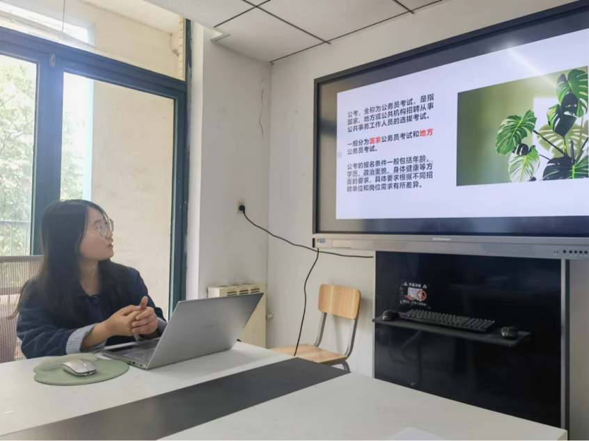 举办考公经验交流分享会。来自2020级的王湲、王佳慧、冷依璇、李艳进行了经验分享交流。2021级兼职辅导员王娇和20余名本科生、研究生参与此次交流会。