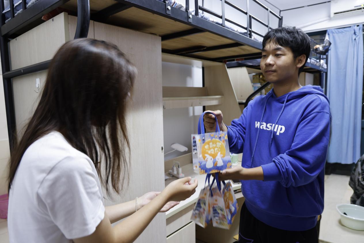 部分新生班主任、2024级新生专兼职辅导员以及学生骨干深入本科生宿舍看望新生,为他们送上啪啪啦