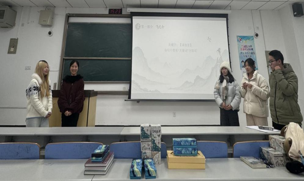 “以诗传情”原创爱情诗词大赛反响热烈,共征集优质作品84首,内容饱含对爱情的真挚感悟。经评审,25名同学获奖,其中杨帆等5人获一等奖,吴湘仪等9人获二等奖,王华乐等11人获三等奖。“诗韵新声诉衷情”古代爱情诗词演绎大赛形式多样,选手通过朗诵、声乐等方式诠释经典,让古代爱情诗词焕发新活力。线下诗词趣味活动中,诗词阅读与交流氛围热烈,展现了参赛学子良好的文学素养与青春风采。