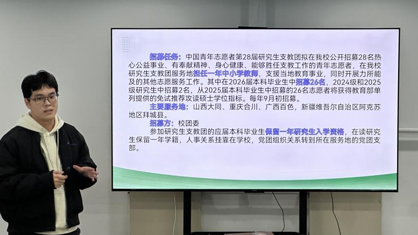 12月9日晚,院学生会与本科生2023级党支部在竹一楼学生活动室联合举办保研经验分享会。2022级专职辅导员张瑞亭、2023级兼职辅导员梁钦杰以及大二、大三部分同学参加。活动由本科生2023级党支部组织委员卢垚主持。