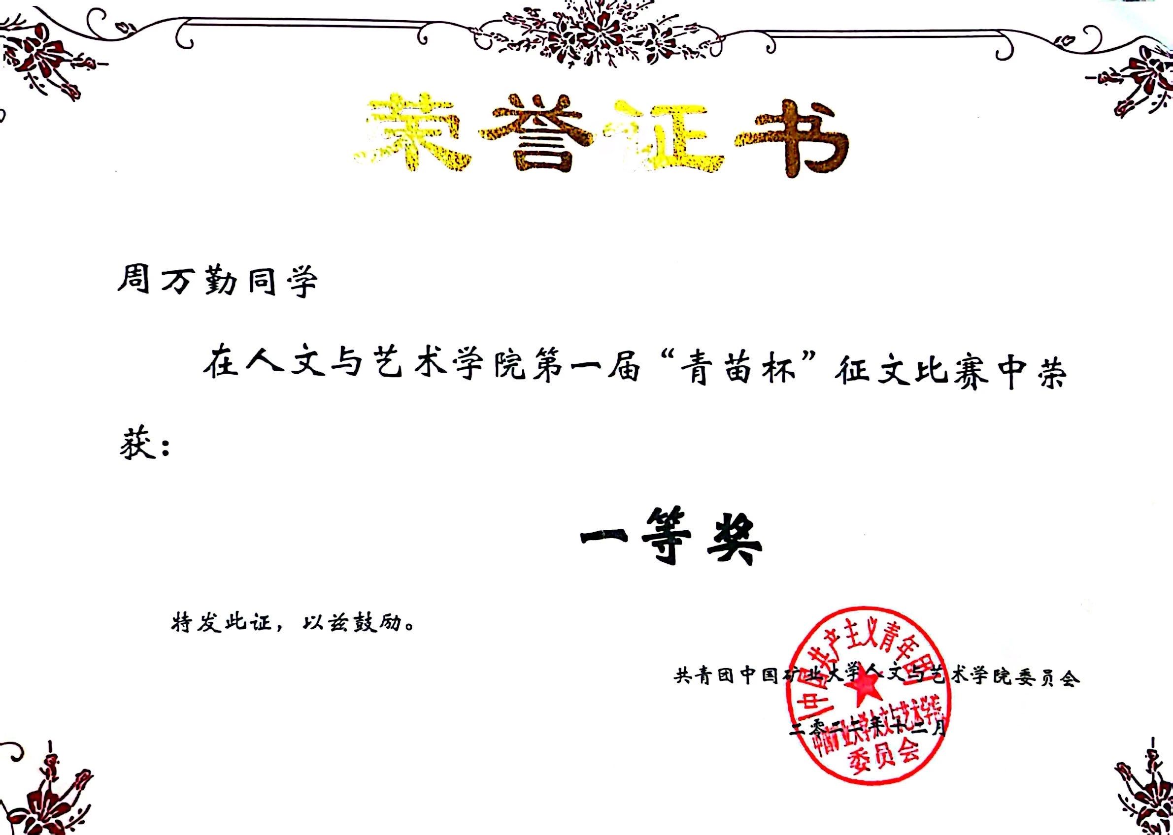 活动创作歌词、剧本各一篇;曾参与全国大学生志愿服务社会实践并创作歌词一篇,于西北大学创意写作中心发表散文一篇。曾参与“推普助力乡村振兴”项目获市级优秀团队表彰,参与挑战杯“引星火明童心梦想”项目获全国百强实践团队荣誉。曾担任学校学工处考核中心副部长、啪啪啦