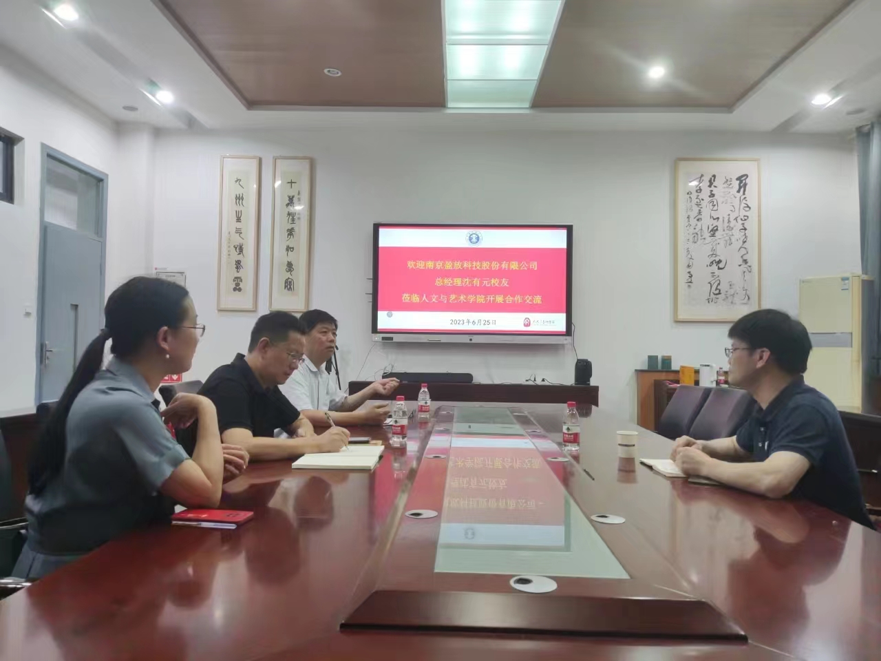 领导教师围绕大学生创新创业、1999级校友毕业返校20年聚会、发挥校企各自优势推进合作发展等,与沈有元校友进行了深入的交流。沈有元表示,南京盈放科技股份有限公司在国家科技部火炬中心、全国供销总社系统、江苏省卫生医疗系统积累有丰富的资源。作为人文啪啪啦