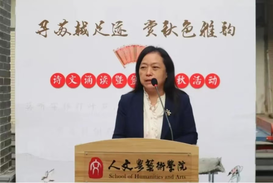 闫续瑞教授为大家讲解苏轼与徐州的历史文化渊源。她讲述了苏轼领军兵抗洪保城、祈求甘霖和寻找石炭的生动事迹,解读苏轼一心为民、甘于奉献的博爱精神,并向汉语三个班级代表赠予书籍,以此鼓励大家进行深入阅读与体悟,加深对苏轼及其精神品质的认识。