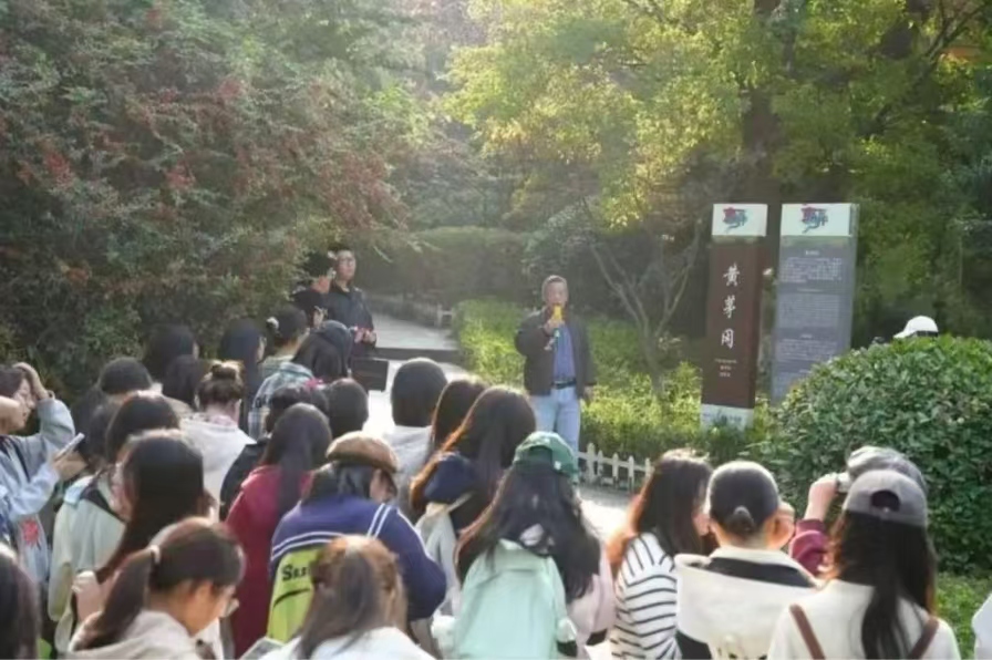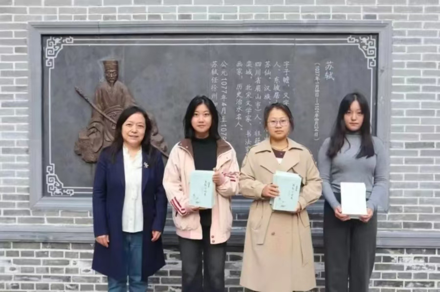 师生们共同参观了黄茅冈、云龙书院、东坡石床、放鹤亭等景点。期间,管仁福老师和景区讲解员结合苏轼诗词,为大家介绍了景点背后的历史故事,引导大家探寻苏轼在徐州的独特印记。大家细细聆听讲解,近距离体味精神文化遗韵,并在放鹤亭前朗诵《放鹤亭记》,至观景台合影留念。