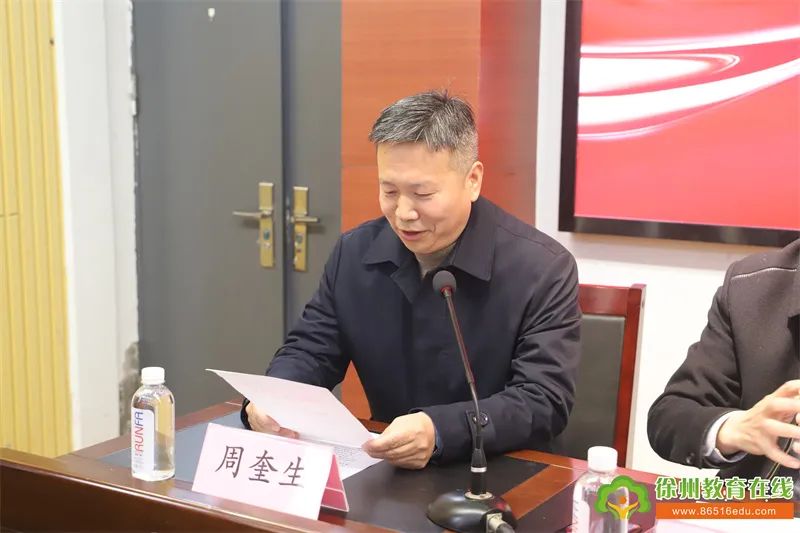 徐州市苏轼文化研究会副会长周奎生宣读《市苏轼文化研究会关于在第十中学设立“徐州市苏轼文化研学基地”的批复》。徐州十中正式被赋予了“徐州市苏轼文化研学基地”与“苏轼文化研习传播基地”的双重荣誉。这一称号不仅是对十中过去在研学教育领域所取得成绩的认可,更是对其未来在苏轼文化传承与发展道路上所寄予的厚望与期待。